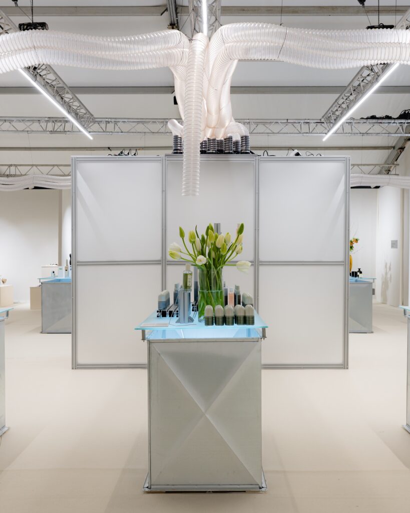 Beyond the booths, collaborations introduce moments of pause and play. A Balbosté culinary residency serves vibrant, sculptural dishes within modular seating that shifts throughout the day, turning hospitality into another design element.